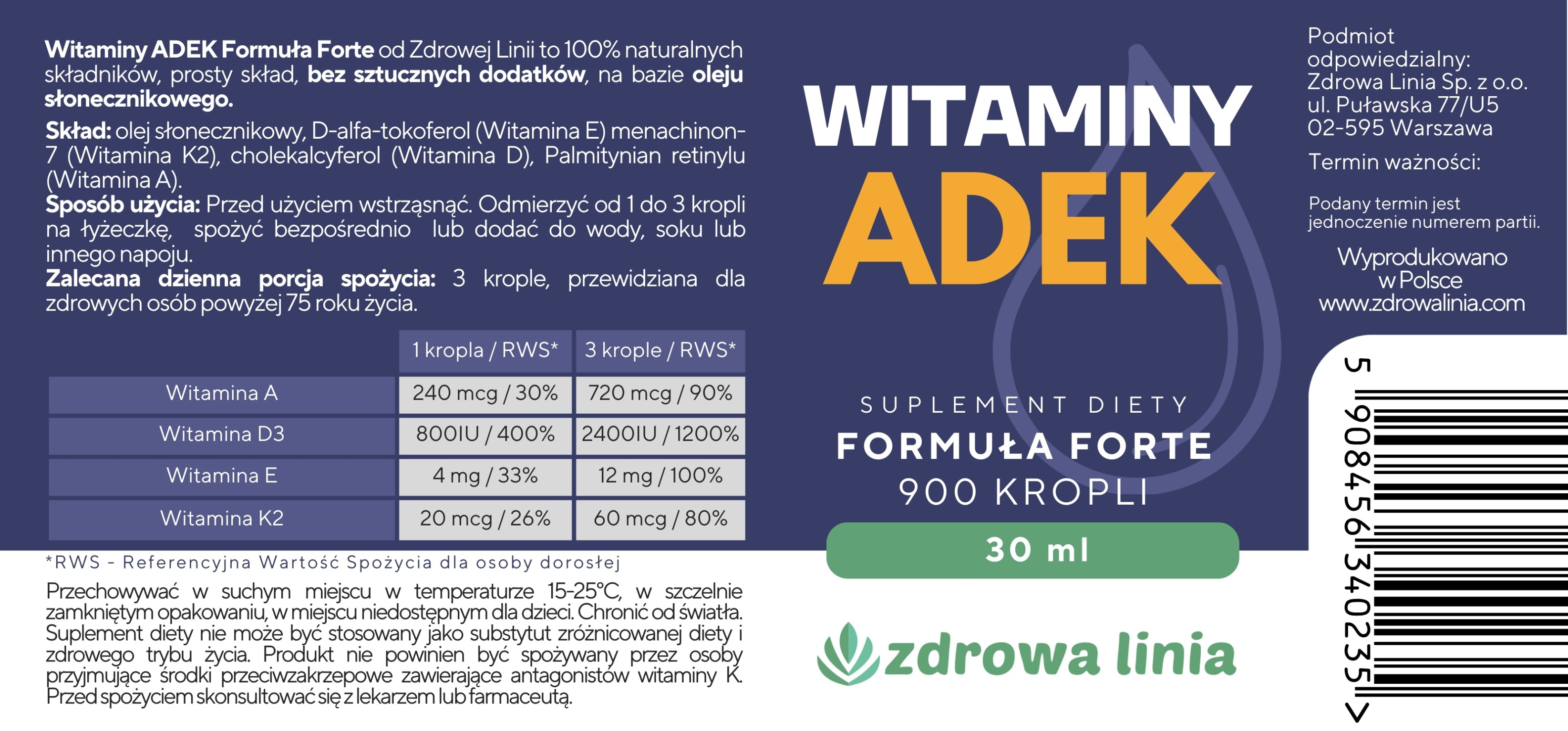 Witaminy ADEK Formuła Forte od Zdrowej Linii to 100% naturalnych
